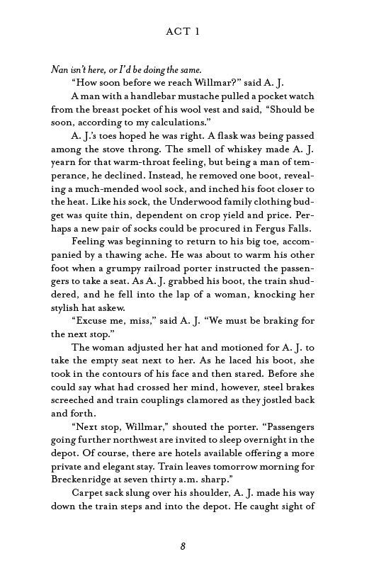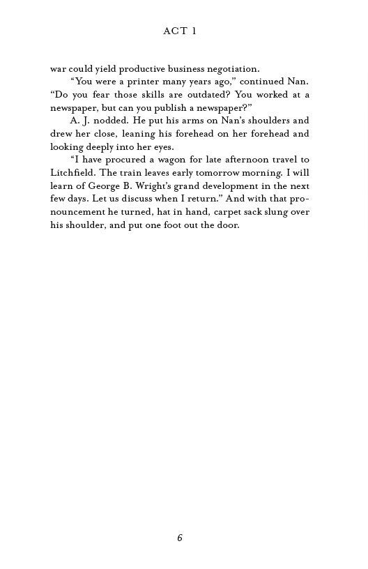 A risk taker since his 20’s, A.J.’s restless spirit is tempered by his wife and four children’s comfortable farm life in Medina, Minnesota. Bountiful crops of corn, oats, and wheat are finally paying off after nine years of hard work. The Civil War veteran and former printer faces a major dilemma circa 1872. Should he stay or should he go?